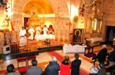 The Icon of Our Lady of Częstochowa arrived in Caravaca de la Cruz after 8.00AM and was placed in the famous basilica of the Holy Cross. At the site where the Moorish king was converted, the Holy Mass was celebrated at 8.30AM. During the Eucharist the celebrating priest prayed for the conversion of hearts and for the defence of life. After the Holy Mass there was an adoration of the Holy Cross. Despite very bad weather and electricity damage, about 100 people attended. The ceremony had to be lit only by candles but this gave it a special charm. Next they said the Holy Rosary in defence of life and family and the Most Blessed Sacrament was exposed.